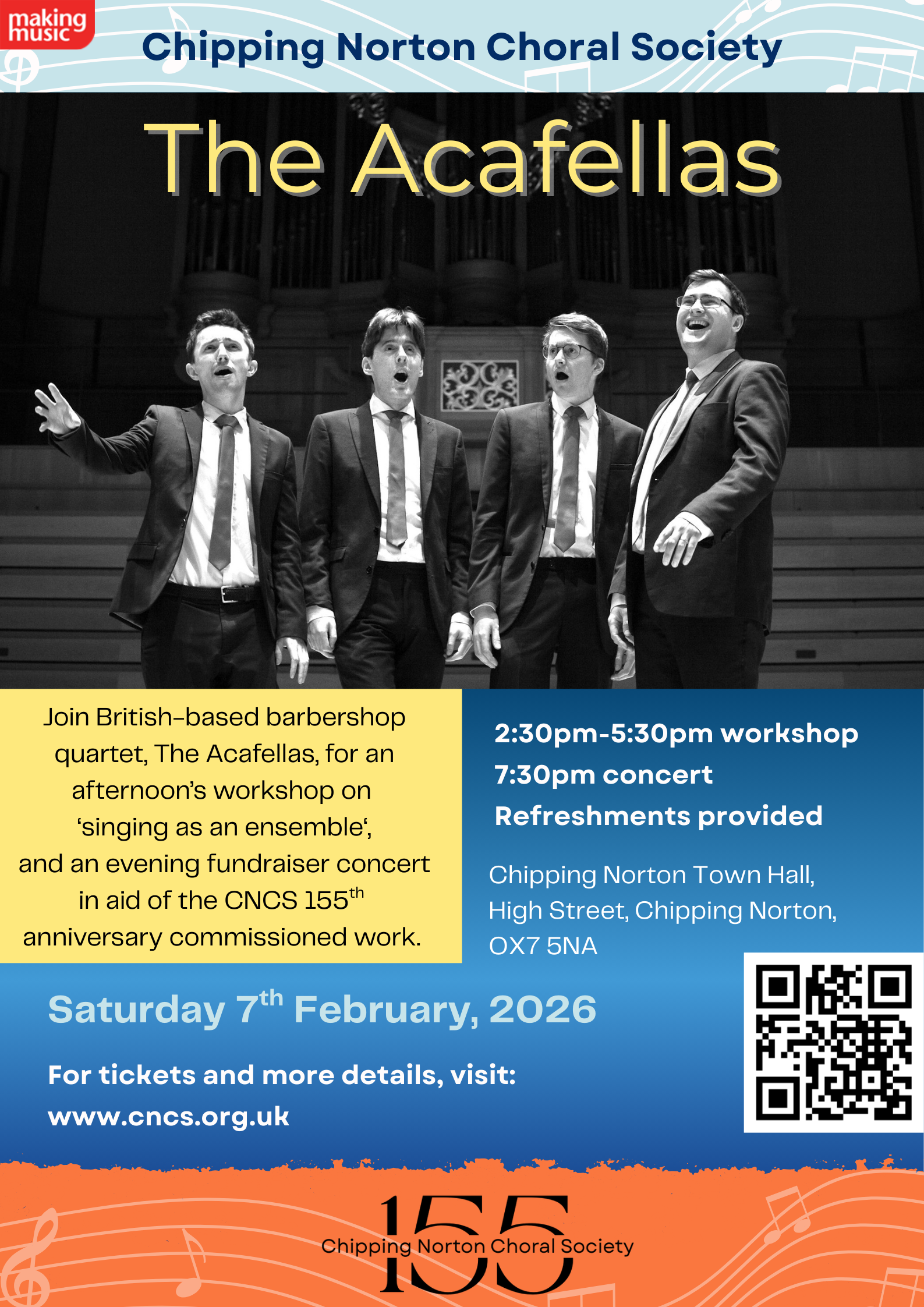 One last thing: my barbershop quartet, The Acafellas, will be leading an afternoon workshop on ensemble singing, and then performing a concert in the evening as a fundraising event. I’d be delighted to see some friendly faces in the audience, so please consider coming along to one or other of the events. The poster is below, and you can get tickets here: https://www.cncs.org.uk/product/acafellas/